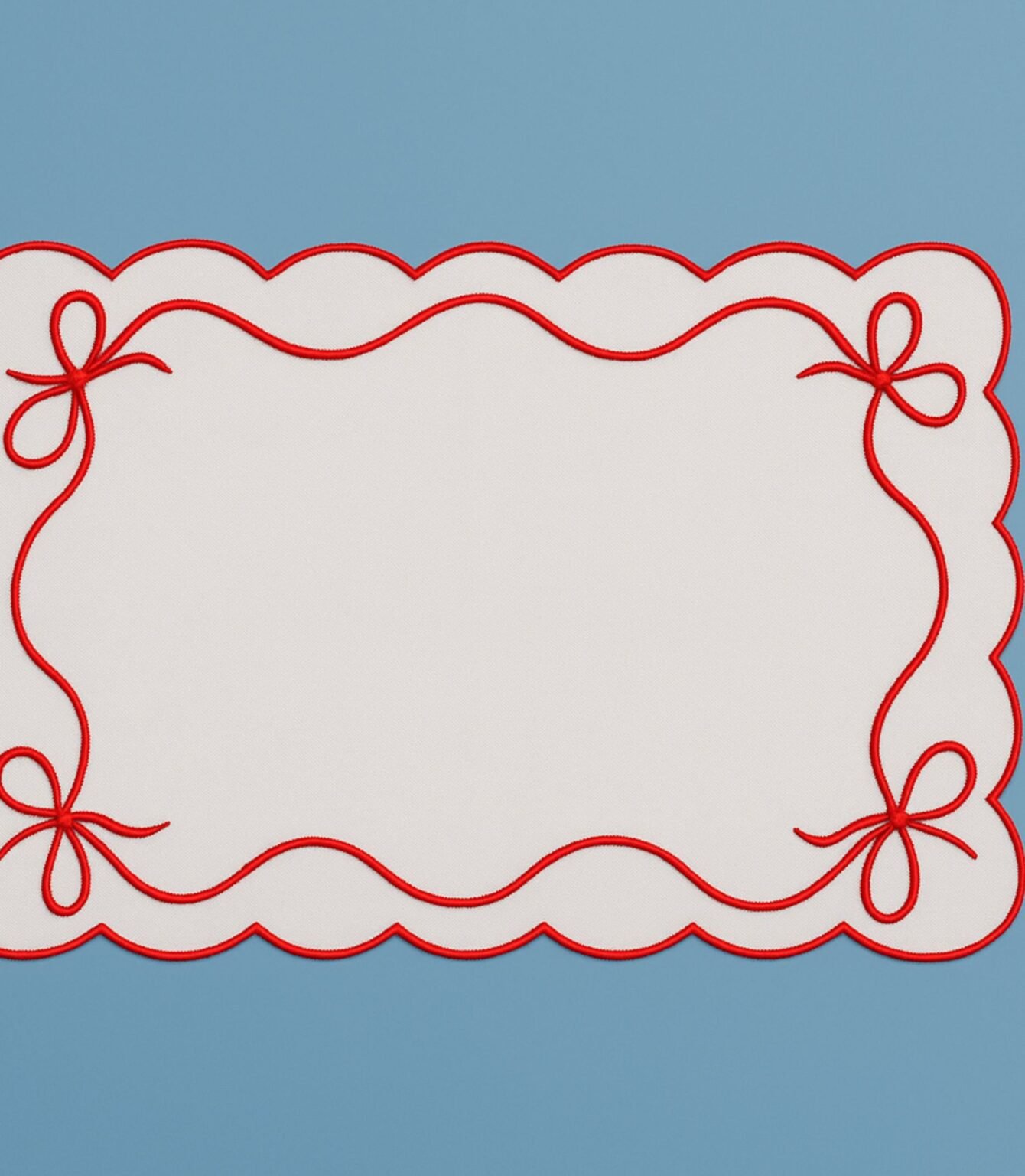 • beige embroidered scalloped edges with beige petal embroidery on 1 corner white linen fabric. price 40aed per napkin